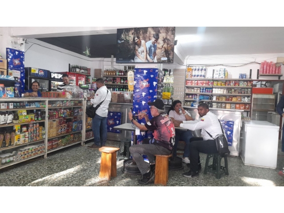 Equipado con: Estantes, vitrinas, neveras, enfriadores, cavas, congelador, calentador, cafetera, microondas, amasadora, cocina equipada, dispensador de maní, agencia de loterías, otros